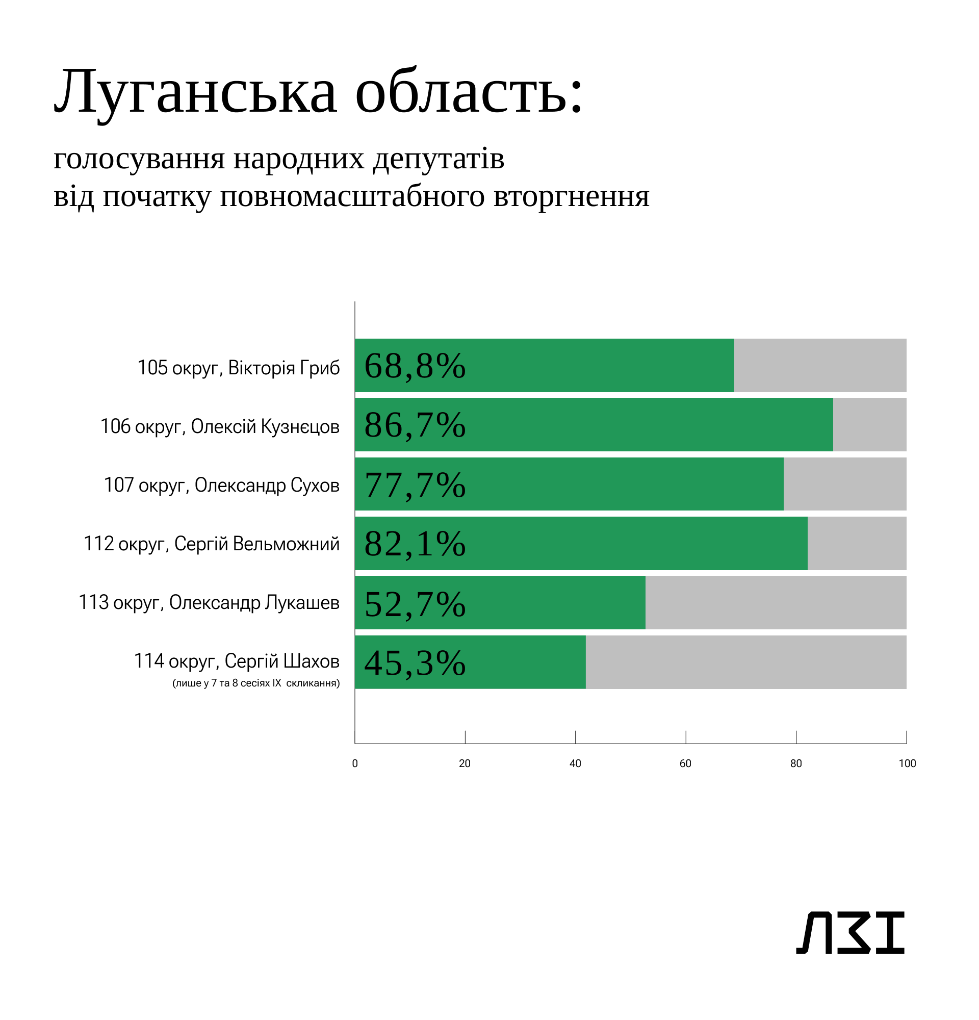 На території Луганської області перебувають в повній, або частковій окупації території усіх 11 виборчих округів, які там розташовані. Додамо, що 5 з них — окуповані з 2014 року та не були представлені у парламенті. Предметом дослідження стали округи, окуповані росіянами після 24 лютого 2022 року.