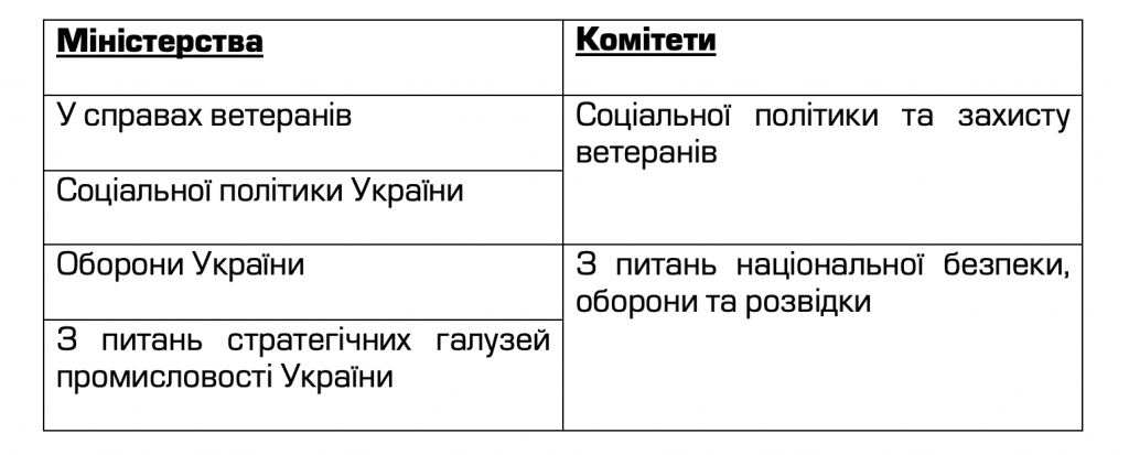 Саме це ми можемо спостерігати в сучасній Раді – наразі два комітети контролюють по два міністерства. Комітет із питань соціальної політики та захисту ветеранів має два відповідні міністерства. Така ж ситуація склалась і з Комітетом з питань національної безпеки, оборони та розвідки.