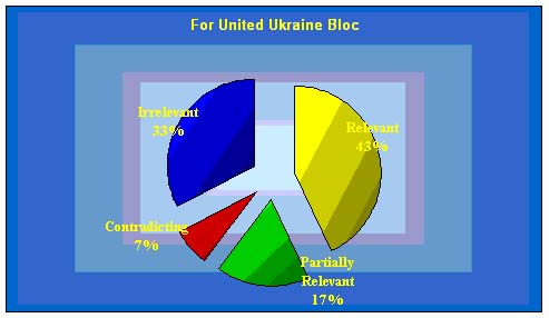 There is quite a number of provisions in the campaign program developed by the For United Ukraine bloc that are purely declarative making it impossible to define the general trend that the Bloc may follow in Parliament to implement the program. Such provisions, in particular, include commitments to strengthen the efficiency of the system of government; recover Ukrainian family values; develop efficient systems of social and pension security, and public health care; provide the youth with realistic prospects; ensure cooperation between the government, political parties, and civic society; modernize science and education; rejuvenate official public authorities; set up a continuous dialogue between the government and the public; speed up the administrative and the judicial reforms; harmonize the interests of the center and the regions; counteract extremism and intolerance; and support respect of constitutional human rights.