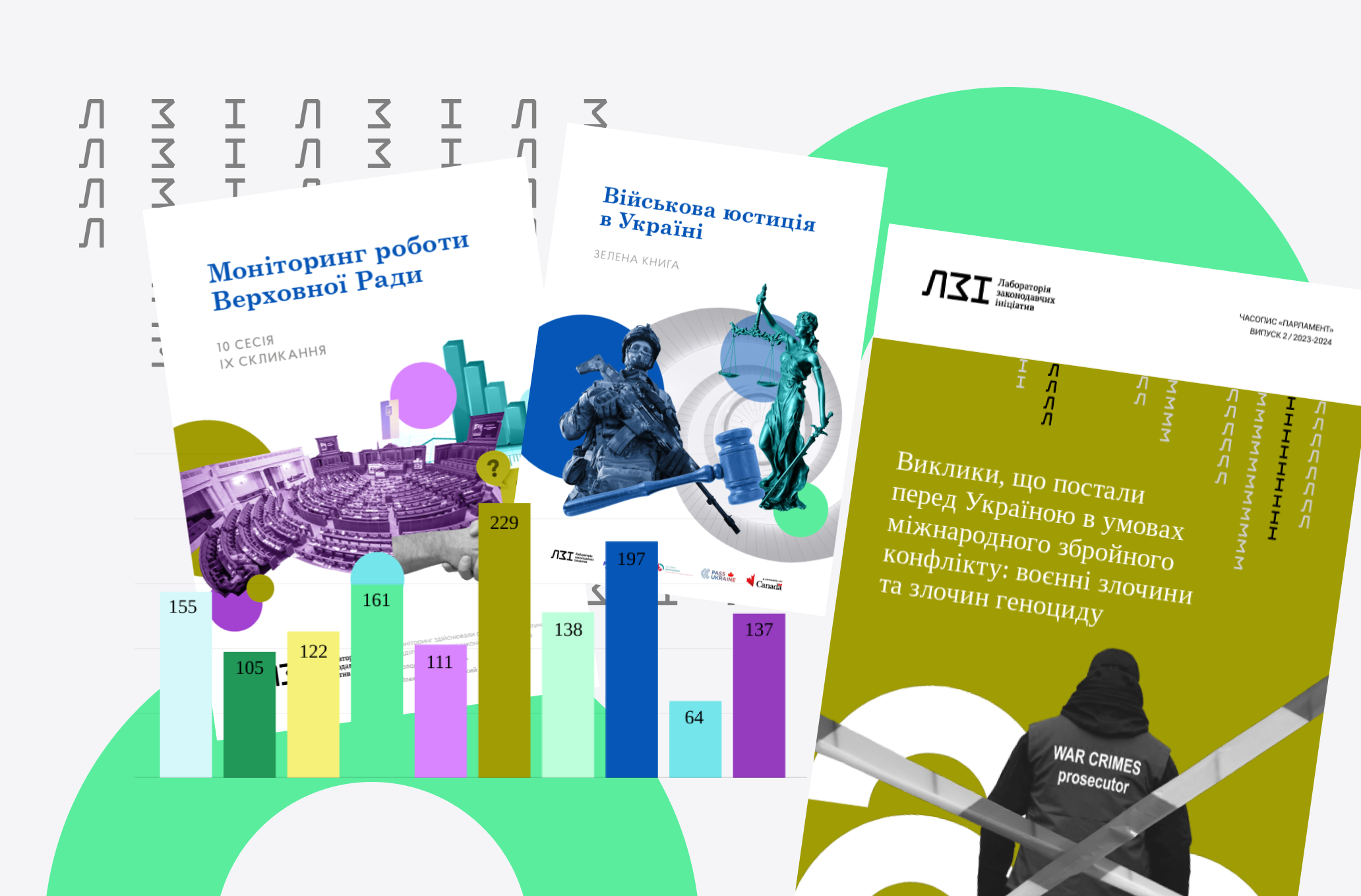 У контексті викликів, повʼязаних з повномасштабною війною рф проти України, ЛЗІ підготувала й Зелену книгу «Військова юстиція в Україні» — аналітичний документ, який охоплює відомості щодо світового досвіду регулювання та функціонування військової юстиції, враховує попередні напрацювання з тем військової прокуратури, адвокатури, військової поліції, військової контррозвідки та військових судів, а також висвітлює проблеми створення нових органів системи військової юстиції в Україні.