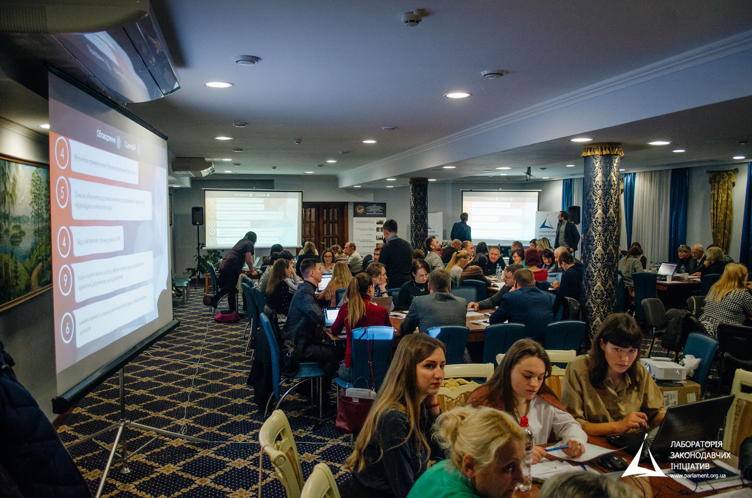 Світлана Матвієнко, Голова Ради Лабораторії законодавчих ініціативвітаючи учасників міських зібрань, наголосила на важливості проведення таких зібрань в регіонах, адже при виробленні загальнодержавної політики важливо враховувати думки не лише представників адвокатської спільноти Києва, а, в першу чергу, пересічних громадян, які не маючи можливості донести свою позицію, виступають в якості фінальних бенефіціарів політики. Також Світлана пояснила, що цей захід відбувається в межах великого проекту, який, зокрема, включає в себе аналітичний звіт на тему «Адвокатська етика в Україні». Отримані думки учасників дискусії та результати голосувань будуть проаналізовані та додані до цього звіту, та поширені як серед учасників заходу, так і серед адвокатської спільноти та широкого кола неурядових організацій та проектів технічної допомоги.