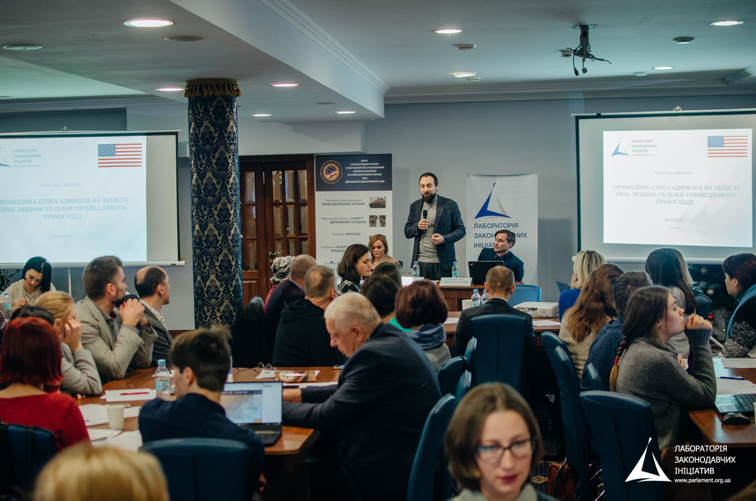 Захід організовано Лабораторією законодавчих ініціатив  в рамках проекту «Забезпечення доступу до правосуддя в Україні: етичні стандарти та інституційні аспекти» за підтримки Відділу з правоохоронних питань Посольства США в Україні. Проект безпосередньо спрямований на всебічне забезпечення принципу верховенства права в Україні шляхом зміцнення інституційної спроможності адвокатського самоврядування та посилення місця етичних норм і стандартів у роботі адвокатів заради кращого захисту прав людини і громадянина.