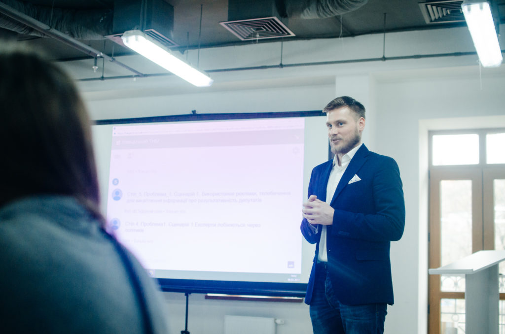 Олександр Заславський, заступник Голови Ради Лабораторії законодавчих ініціатив, презентував механізм та досвід проведення міських зібрань, а також зазначив мету проведення тренінгу: