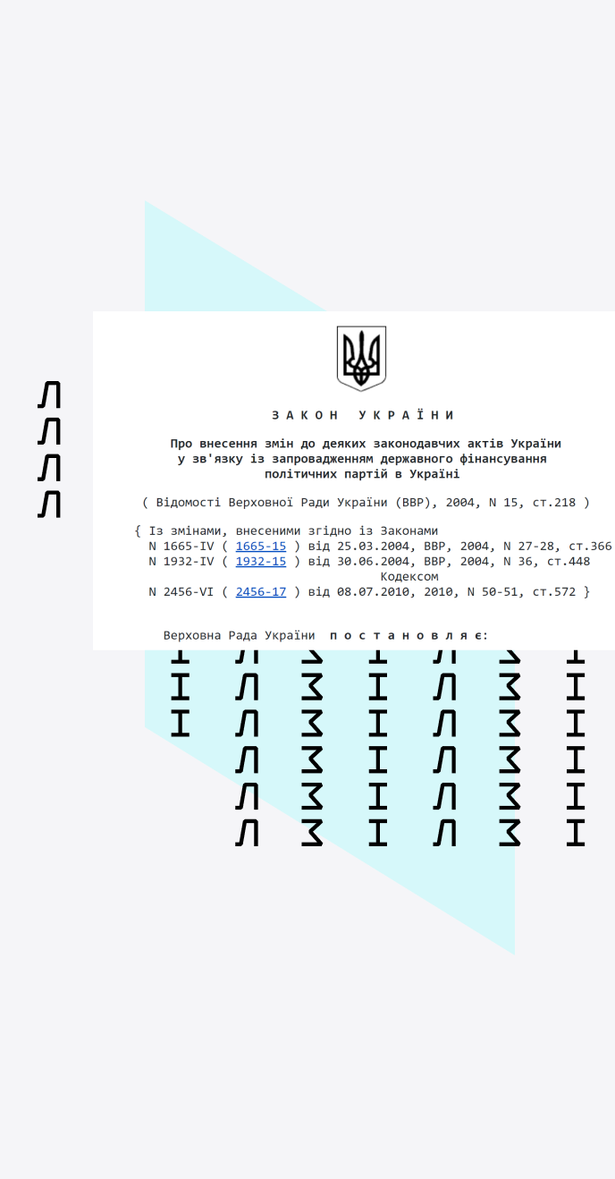 Експерти ЛЗІ стали авторами першого в Україні закону, який запровадив державне фінансування політичних партій. Закон було ухвалено у 2004 році. І хоча саме цей закон було скасовано у 2007 році, але деякі його положення лягли в основу ЗУ «Про внесення змін до деяких законодавчих актів України щодо запобігання і протидії політичній корупції», який діє зараз.